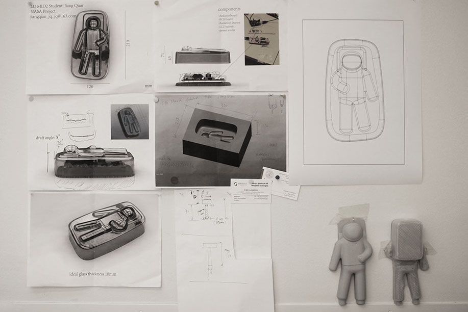The aim of this project is to create a discussion on how society perceive astronauts, are they heroes or mice? The project is summarized by a fully functional Geiger Counter* covered by glass shell in the shape of an astronaut.